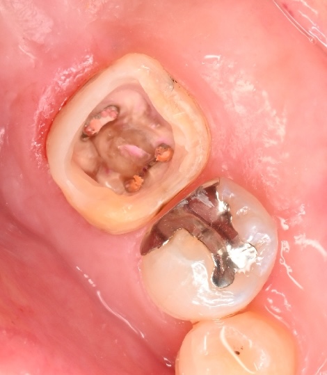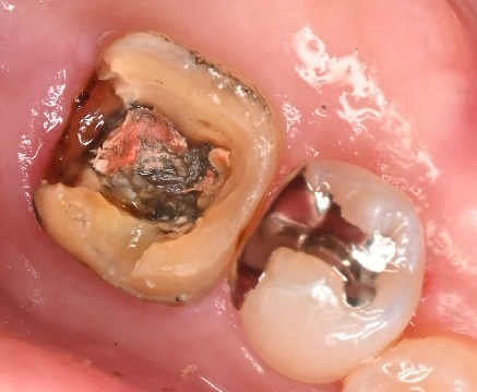 先日来院された患者様のケースです。右下の銀歯に違和感があるとのことで、金属を外してみることにしました。
